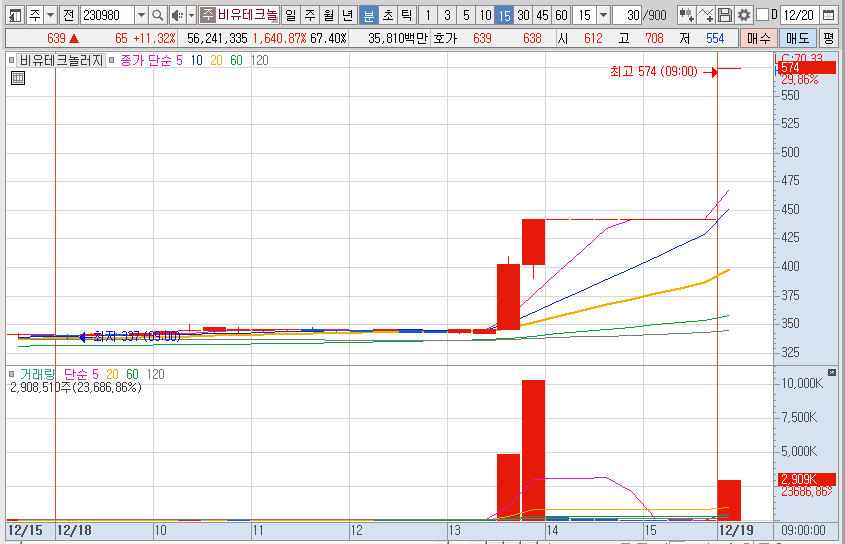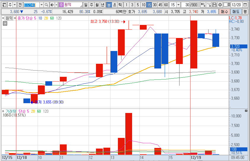 이슈 없음, 상장 후 조정받고 5일 이평선 위로 올라가면서 주가 상승한 것으로 추정