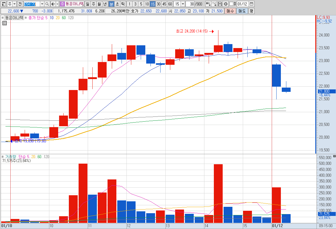 갤럭시 S24 출시를 앞두고 부품으로 부각되어 주가 상승으로 추정