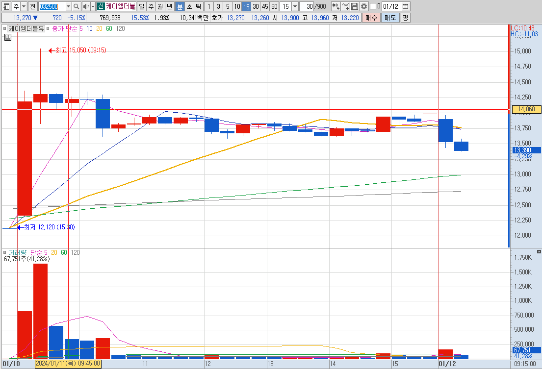 GPT 스토어 출시 기대감으로 AI 섹터 강세가 이어졌는데, 이후 차액 매물 및 투자주의 지정에 따른 수급 부재로 추정