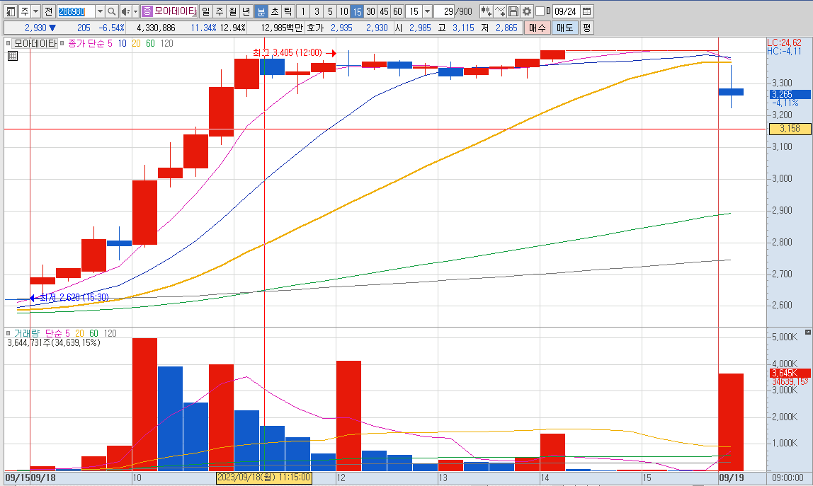 기관 및 외국인 매도세 증가로 하락했다고 추정