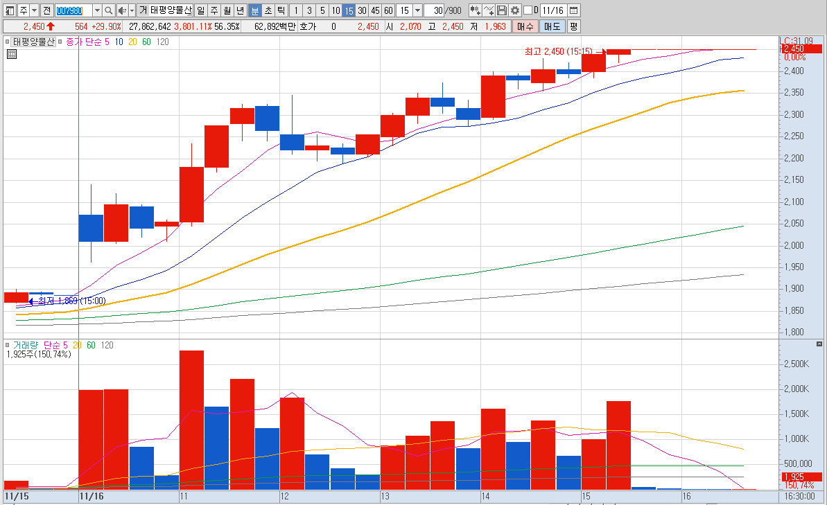 외국인 매수세로 주가 상승으로 추정