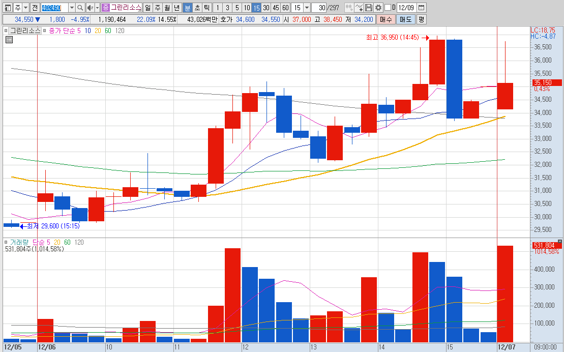 15%이상 상승 및 거래대금 500억 이상