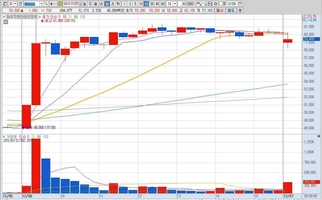 신규 상장주 상승세 및 조정세에서 반등으로 추정