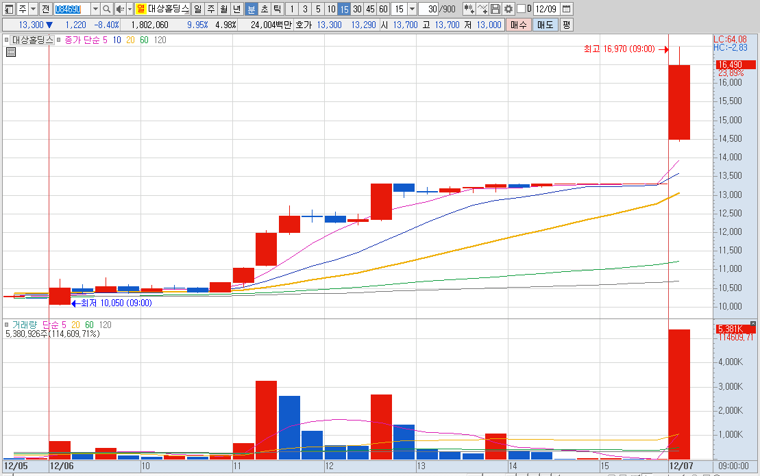 한동훈 테마주로 묶이면서 주가 상승세 지속