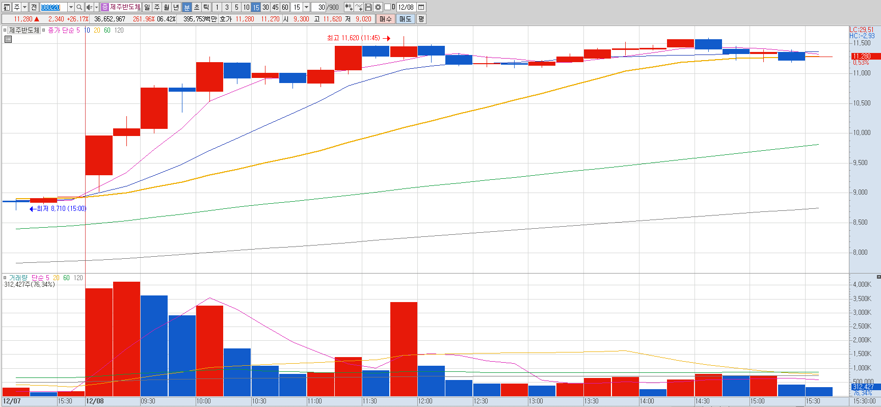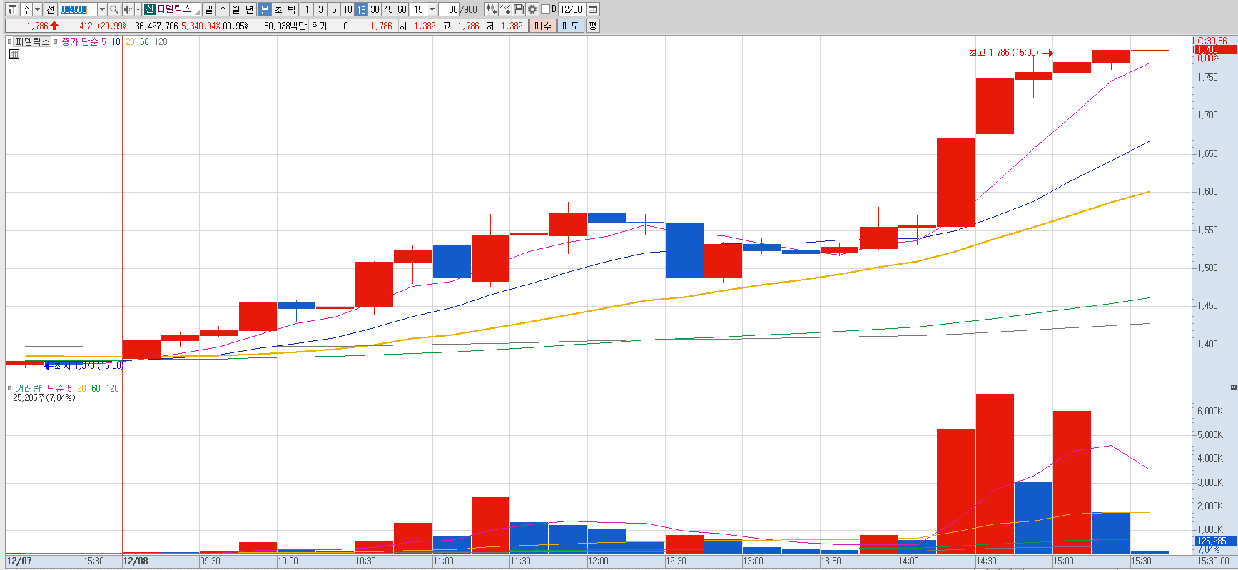 15%이상 상승 및 거래대금 500억 이상