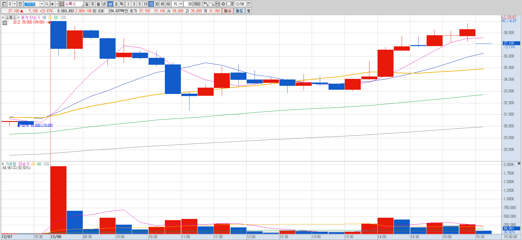 특별한 이슈 없음, 기관 매수세가 들어와서 주가 상승 추정