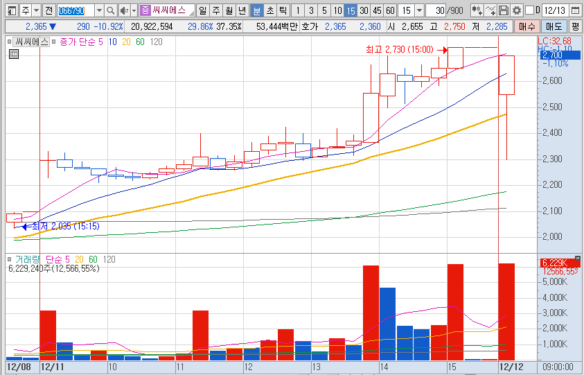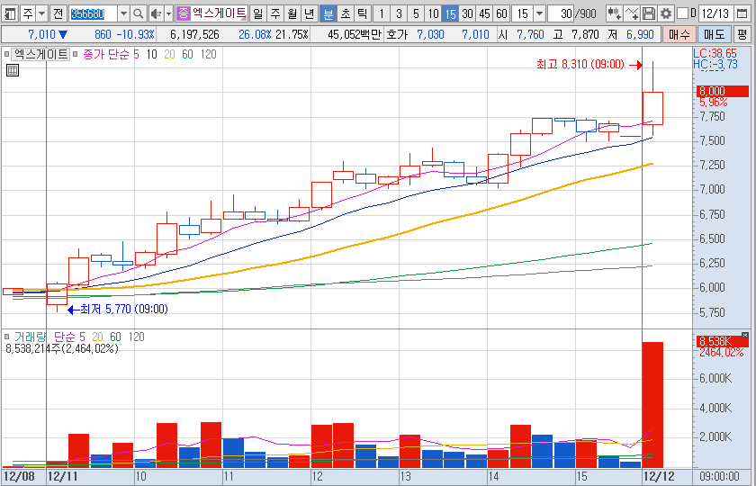 주주우선공모의 구주주청약에 최대주주(THE E&M)주식 100%참여 완료에 상한가 지속