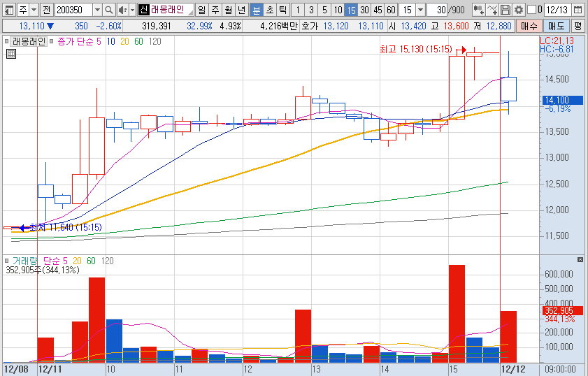 15%이상 상승 및 거래대금 500억 이상