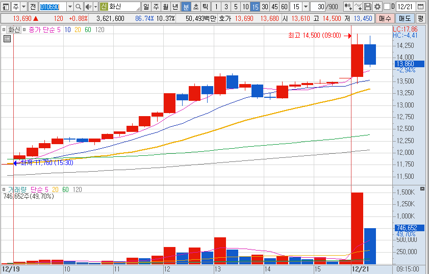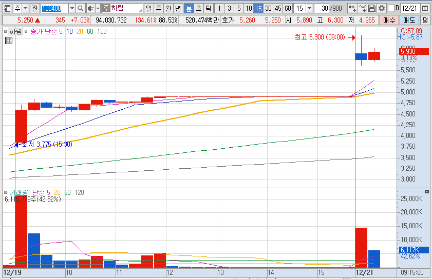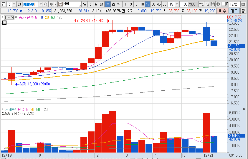 HMM 경영권 매각 우선협상대상자로 선정되었다는 소식에 연일 상한가 지속