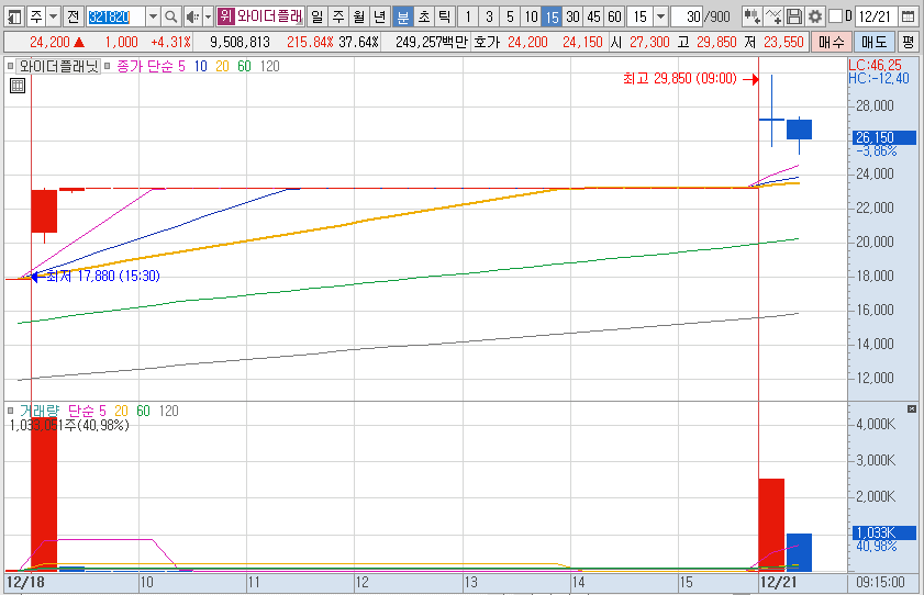 작년에 발행한 신주인수권 및 전환청구권 행사 물량 쏟아져, 압도적인 매도세로 주가 하락