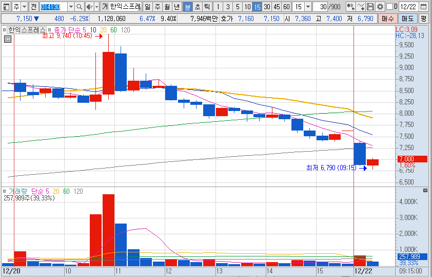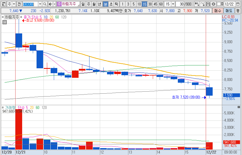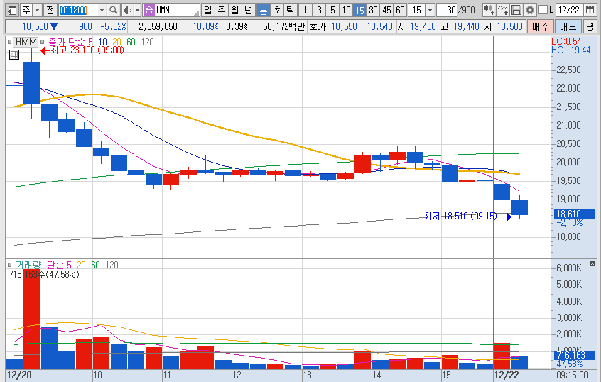 HMM 인수건으로 주가 상승분 반납 및 기관매도세 등으로 주가 하락