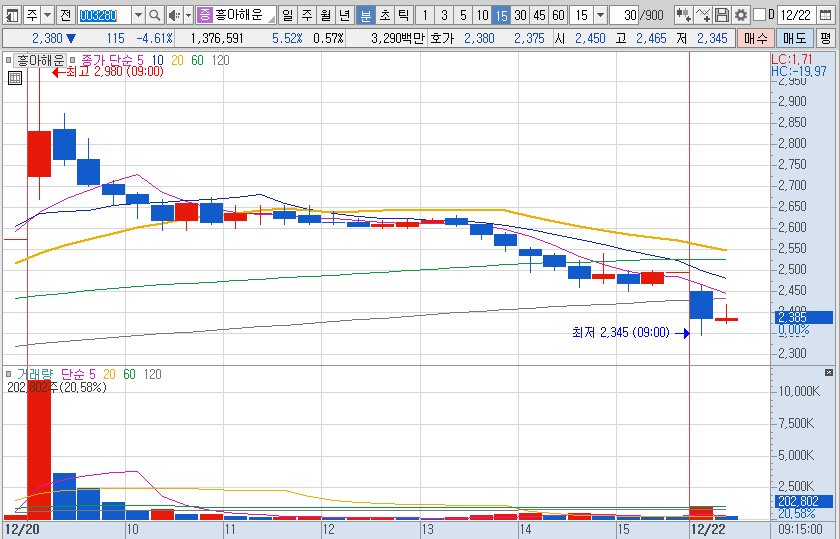 전쟁발 무역 해상 물류대란에 주가 연일 상승 중에 조정으로 추정