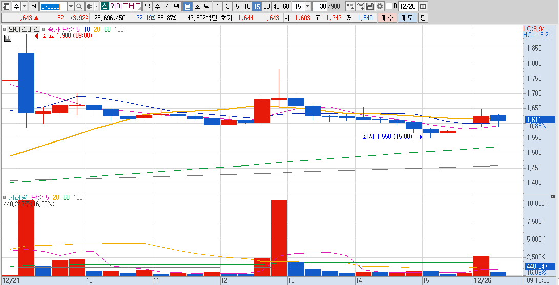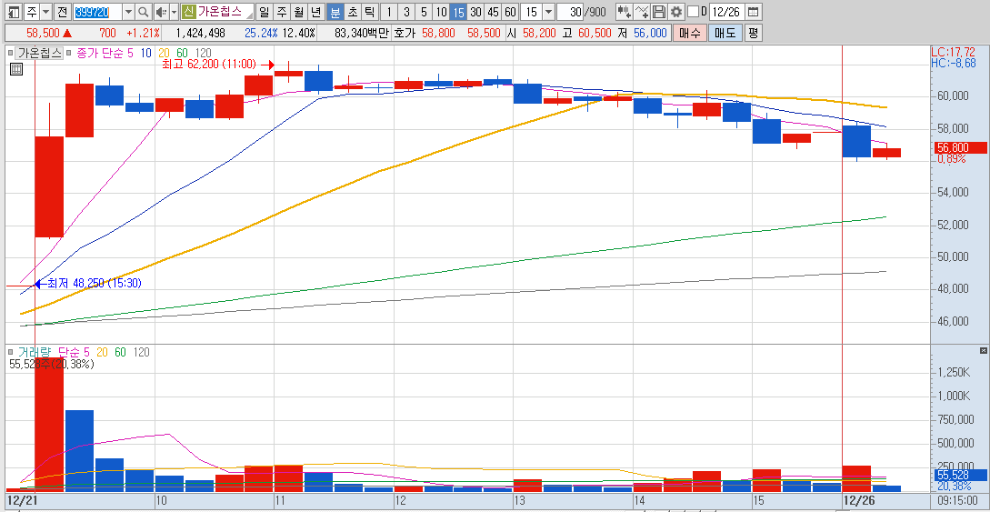 초전도체에 대한 실망감으로 매도세 나왔지만 외국인 및 기관이 저점으로 인식해서 매수했다고 판단