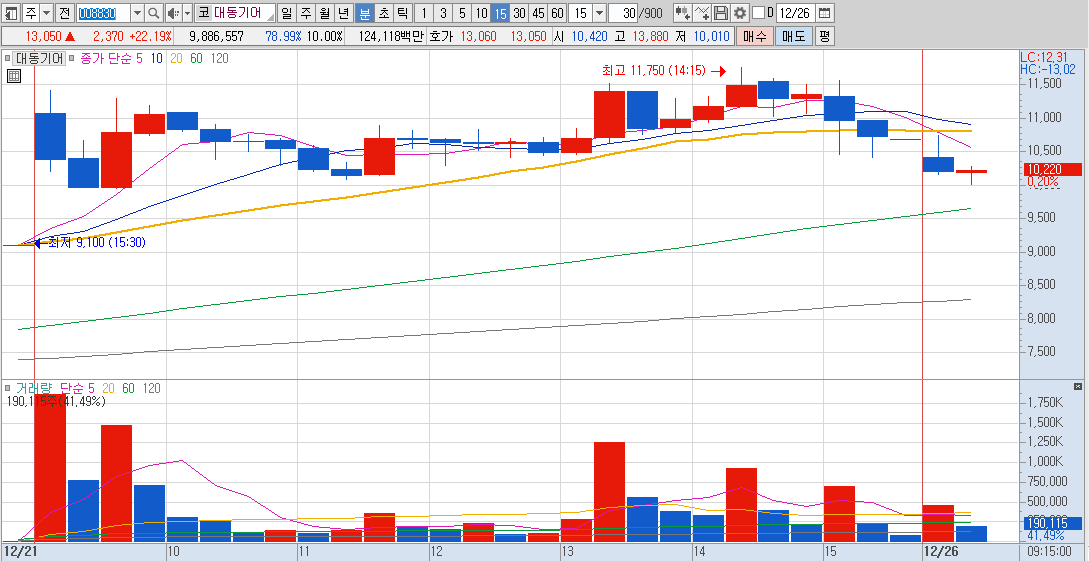 연일 기관 매수세로 주가 상승 추정