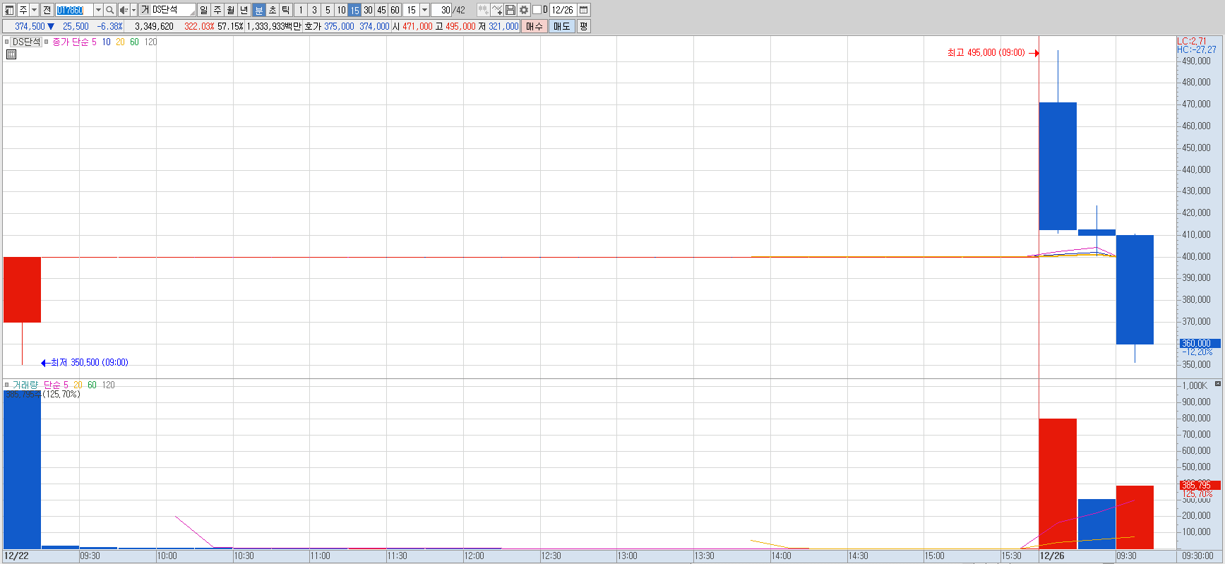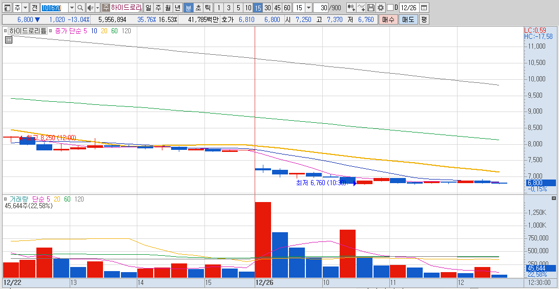 상장폐지 결정으로 인해 정리매매로 주가 하락