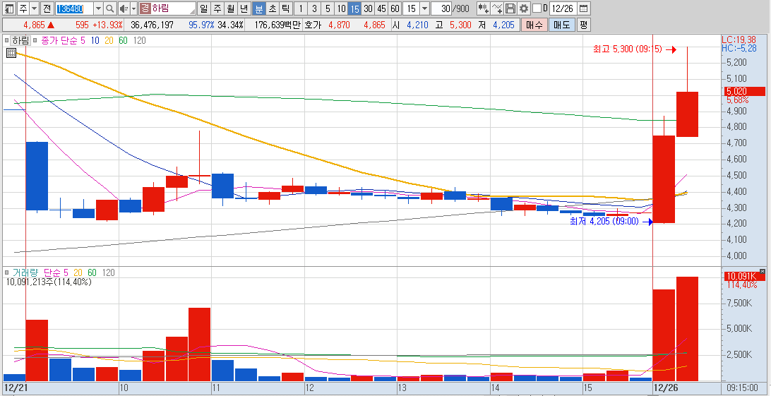 15%이상 상승 및 거래대금 500억 이상