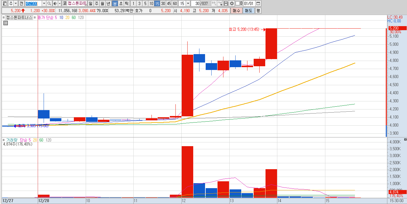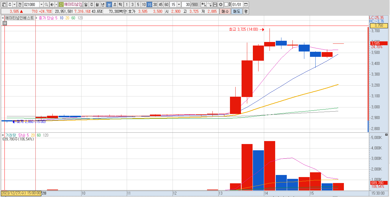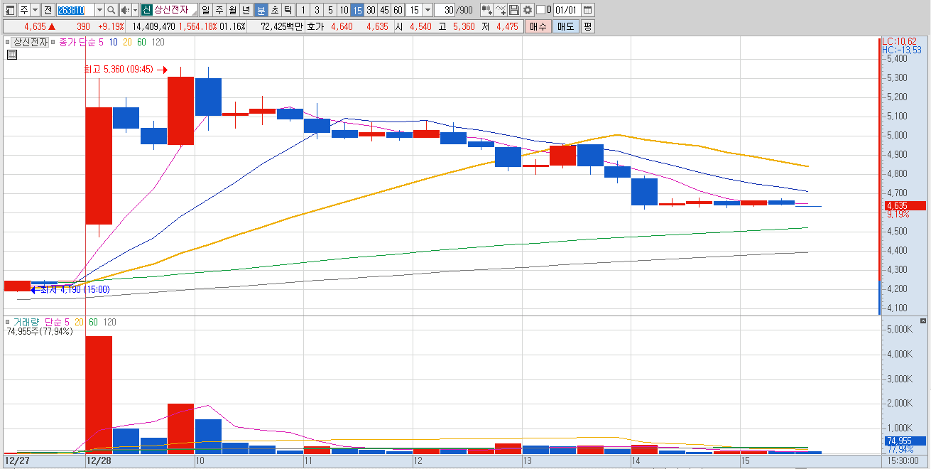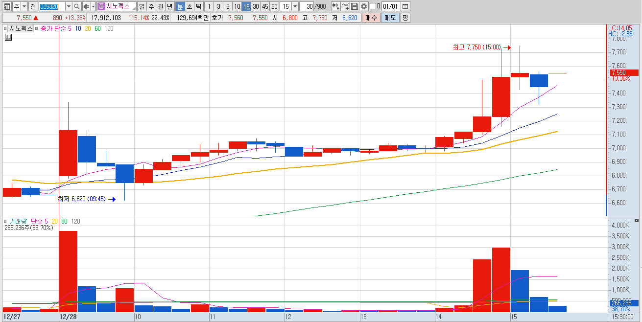 신규상장주에 대한 관심과 기관 및 외국인 매수세 들어오면서 주가 상승 추정