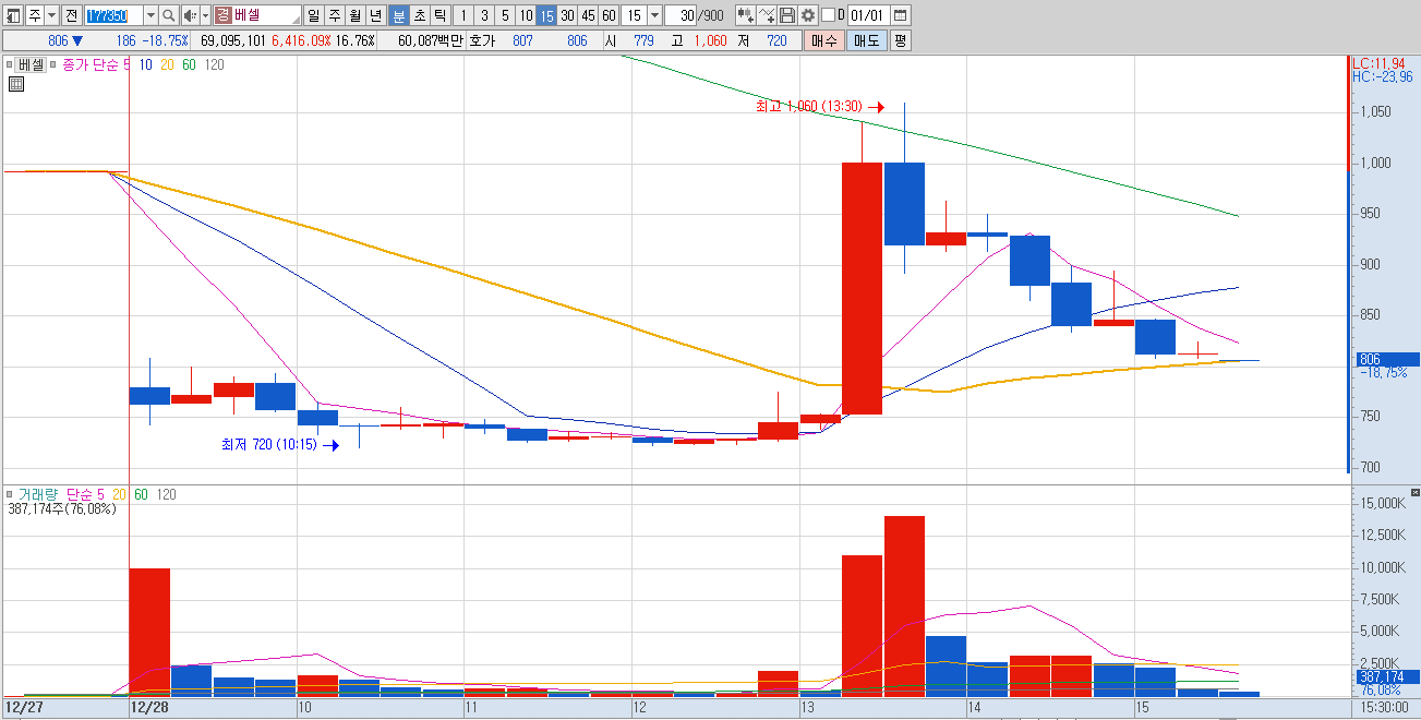 상장폐지 결정으로 인해 정리매매로 주가 하락
