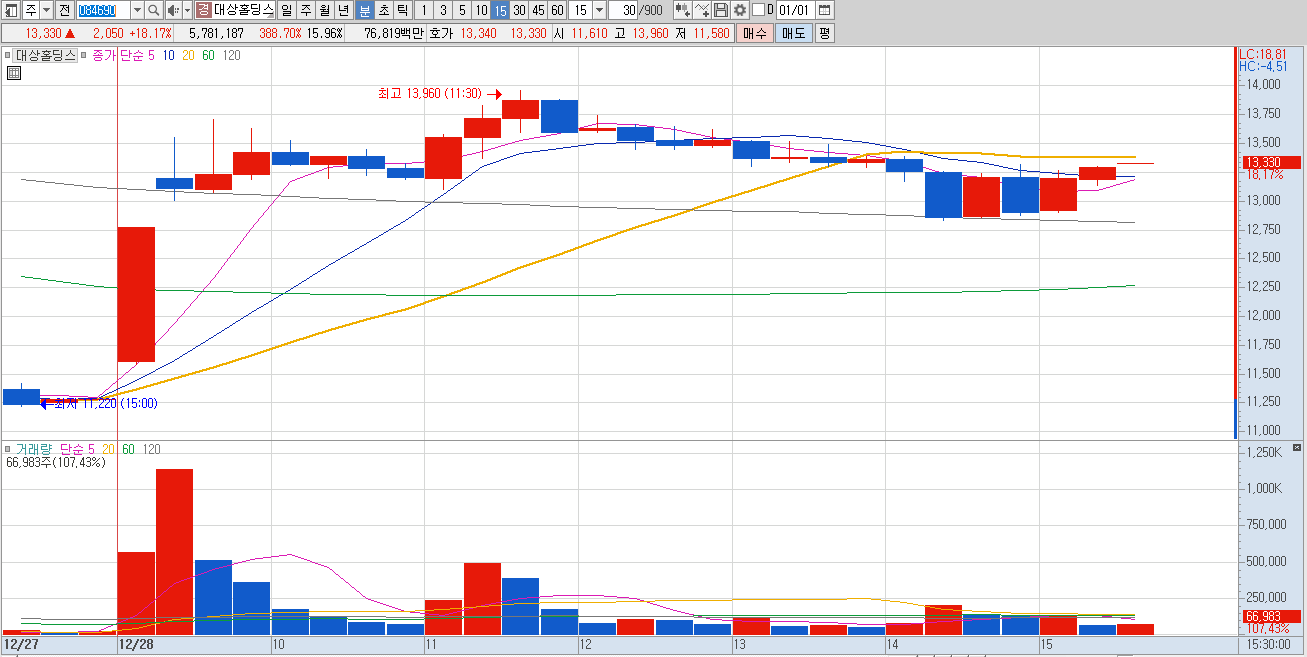 낮아진 주가를 김동선 부사장이 매입하면서 2대주주가 되었다는 소식에 주가 상승