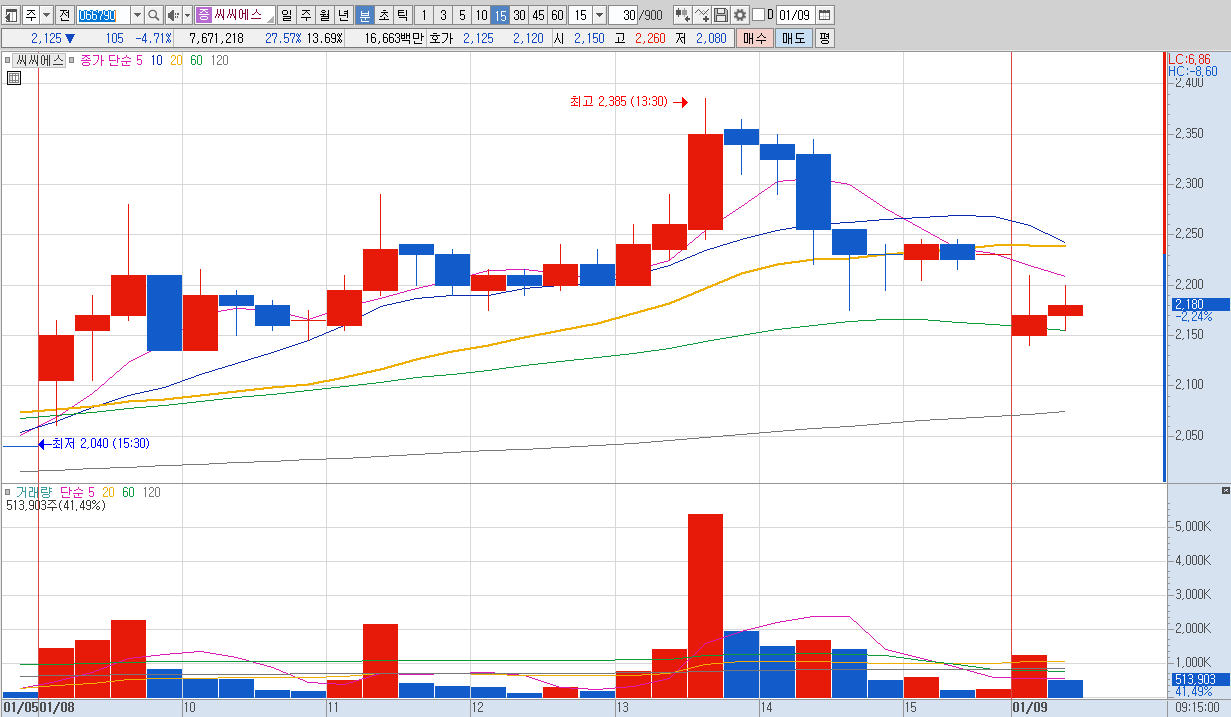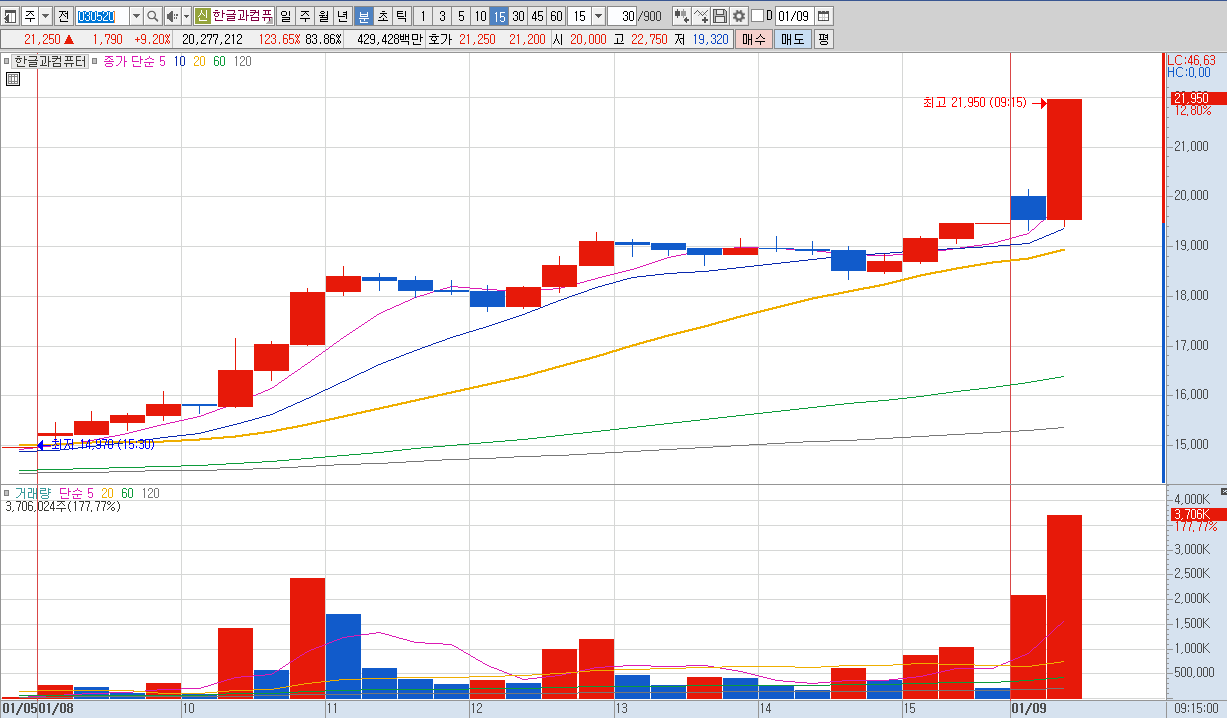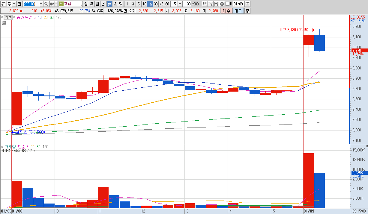 15%이상 상승 및 거래대금 500억 이상