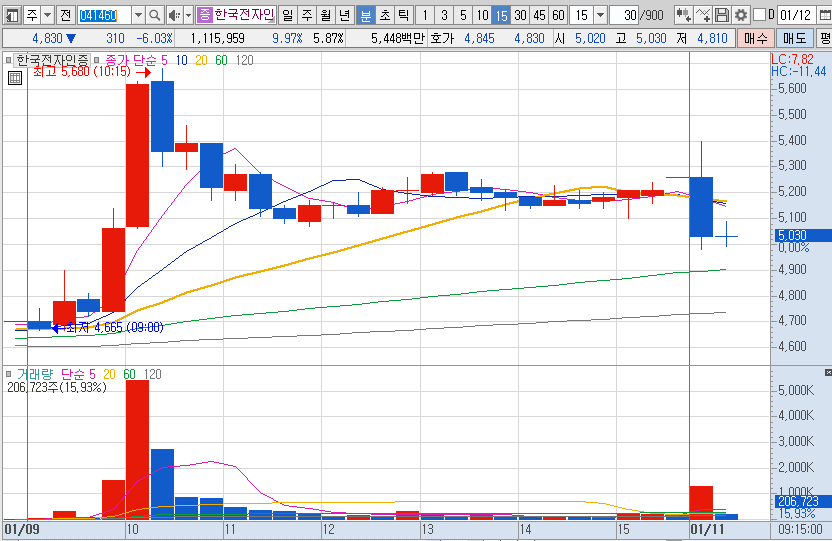15%이상 상승 및 거래대금 500억 이상