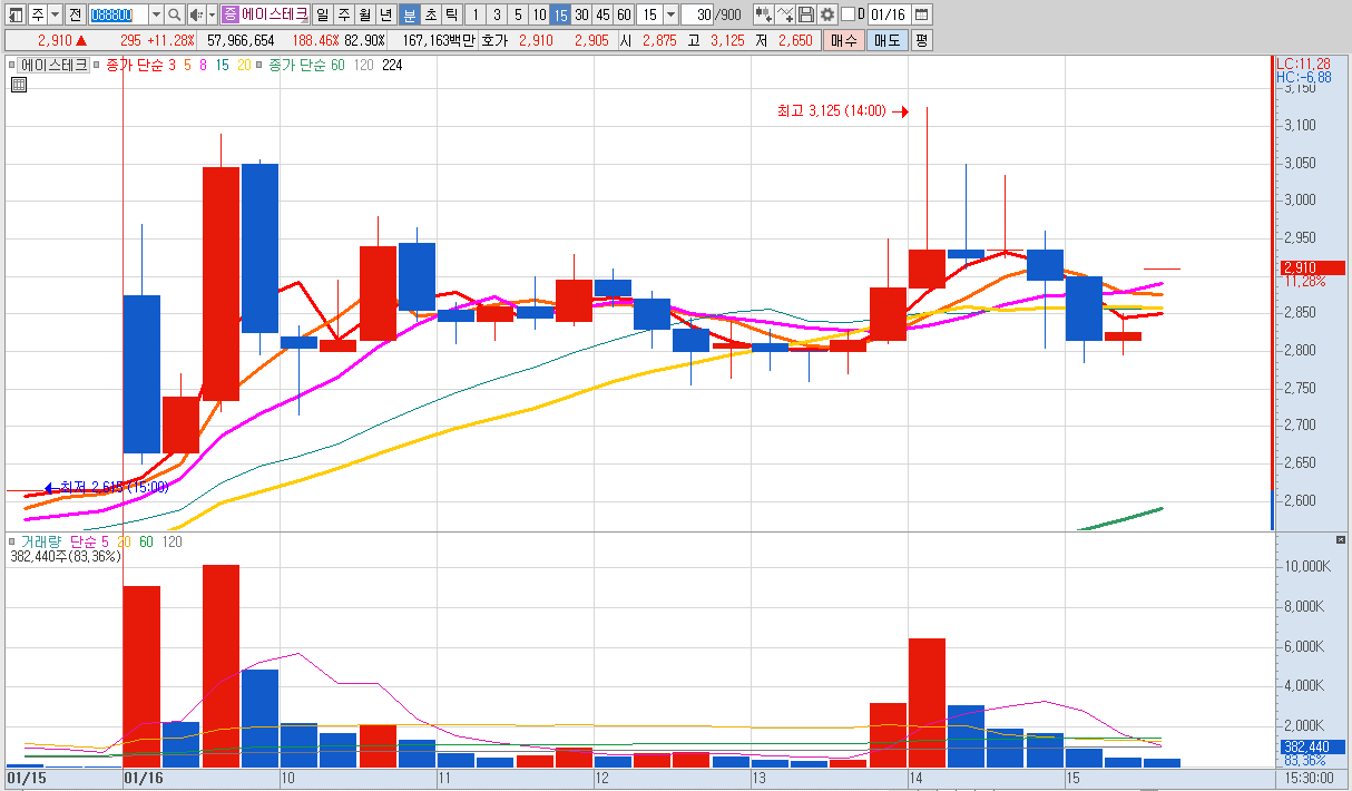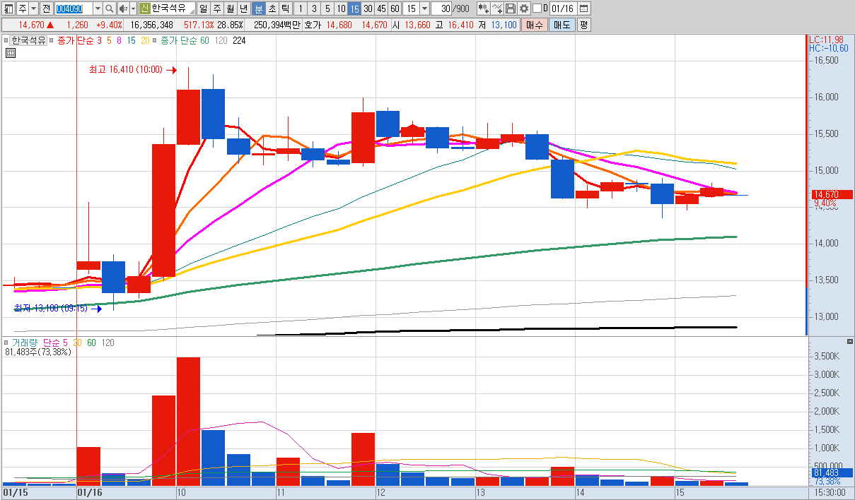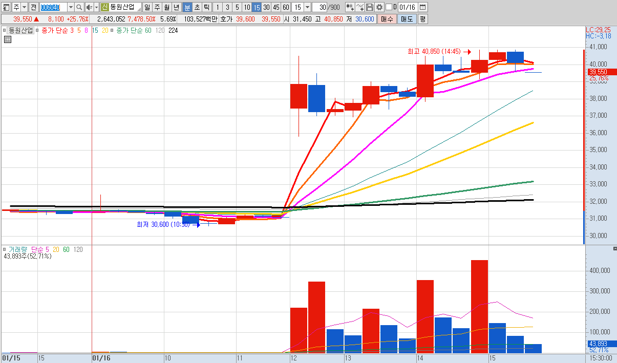 15%이상 상승 및 거래대금 500억 이상