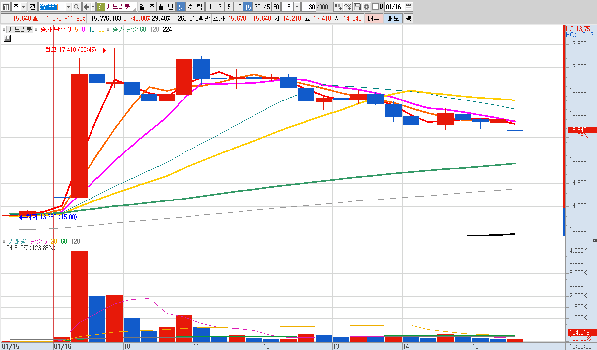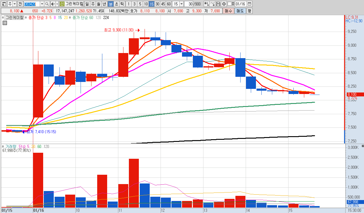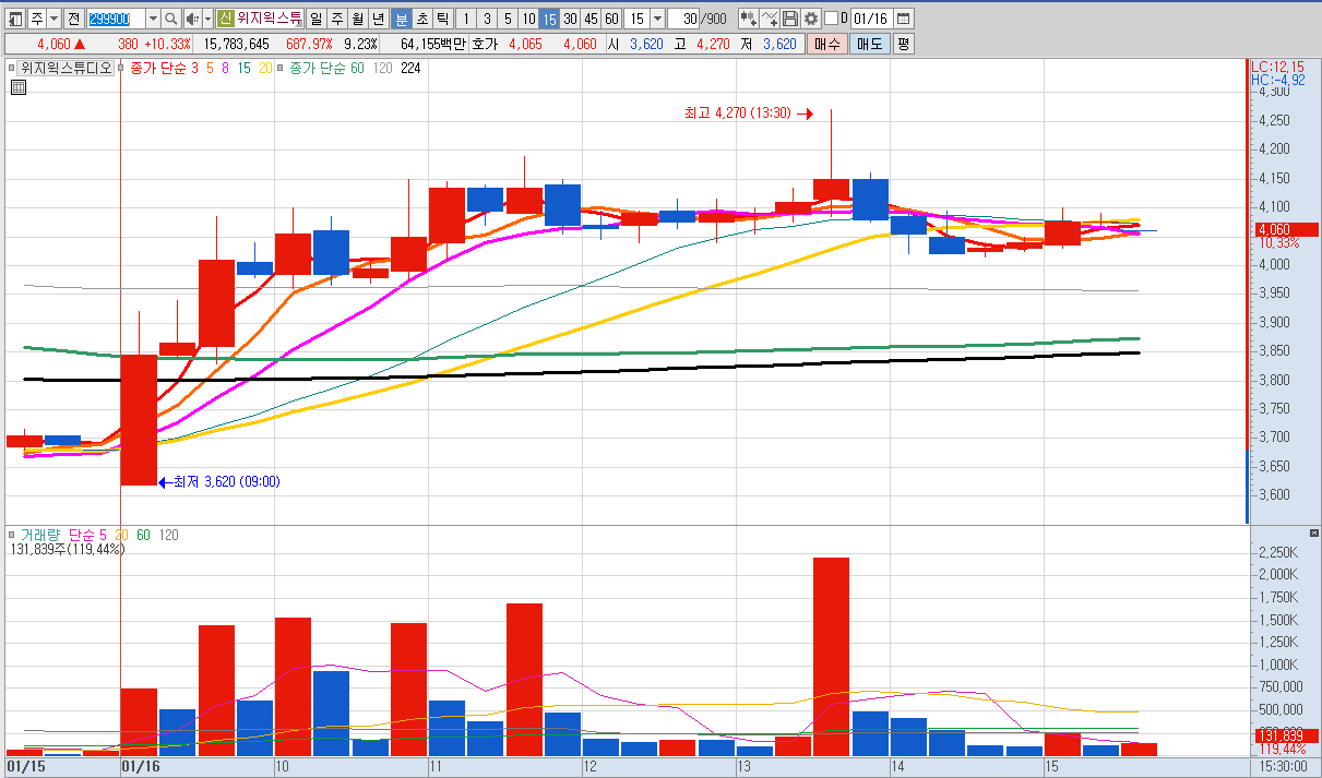 별다른 이슈 없음, 바닥권에서 횡보하다가 거래량 증가하면서 주가 상승