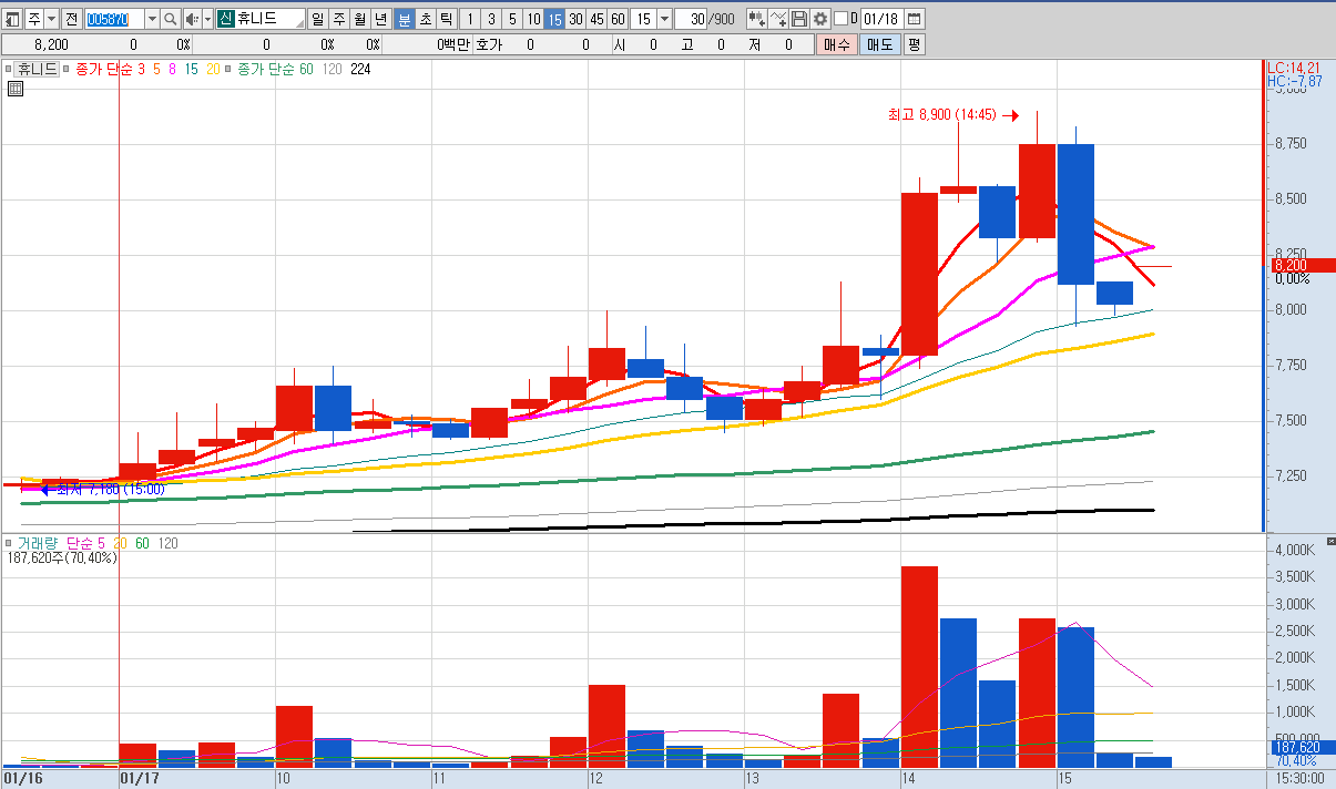 별다른 이슈 없음, 단기 조정세 이후로 급등한 것으로 추정