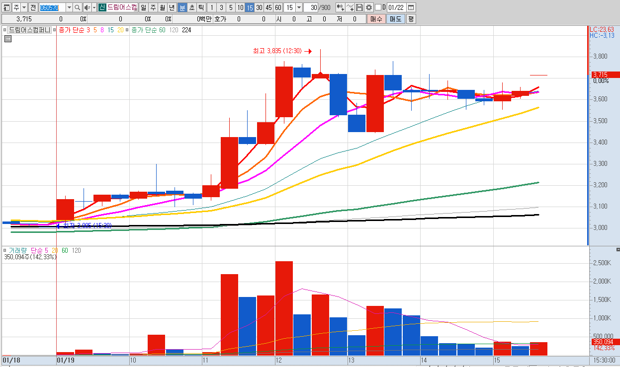 반도체 관련주 상승 및 삼성전자와 하이닉스의 신개념 메모리 PIM 본격화 소식 속 AMD 자일링스의 파트너사인 점이 부각되어 주가 상승
