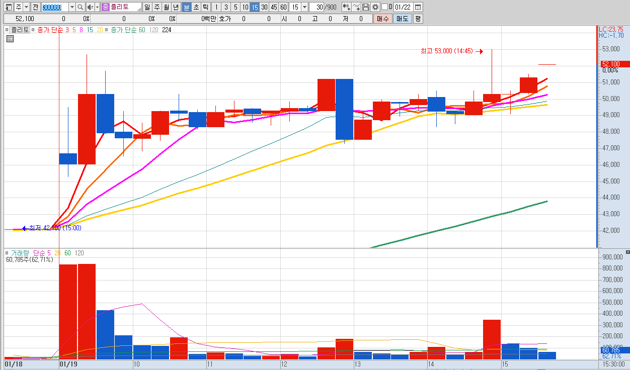 별다른 이슈 없음, 기관 및 외국인 매수세로 인한 주가 상승으로 추정