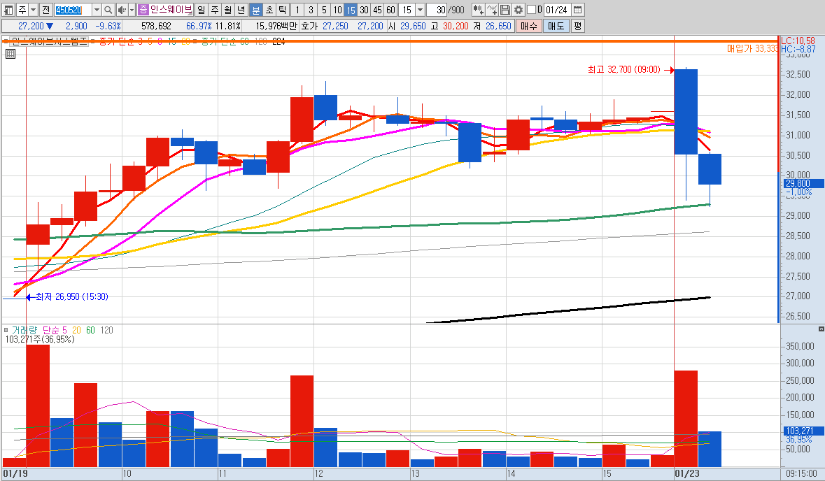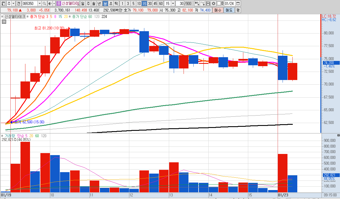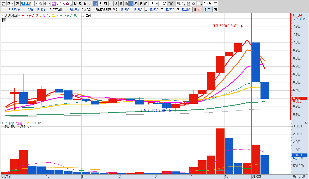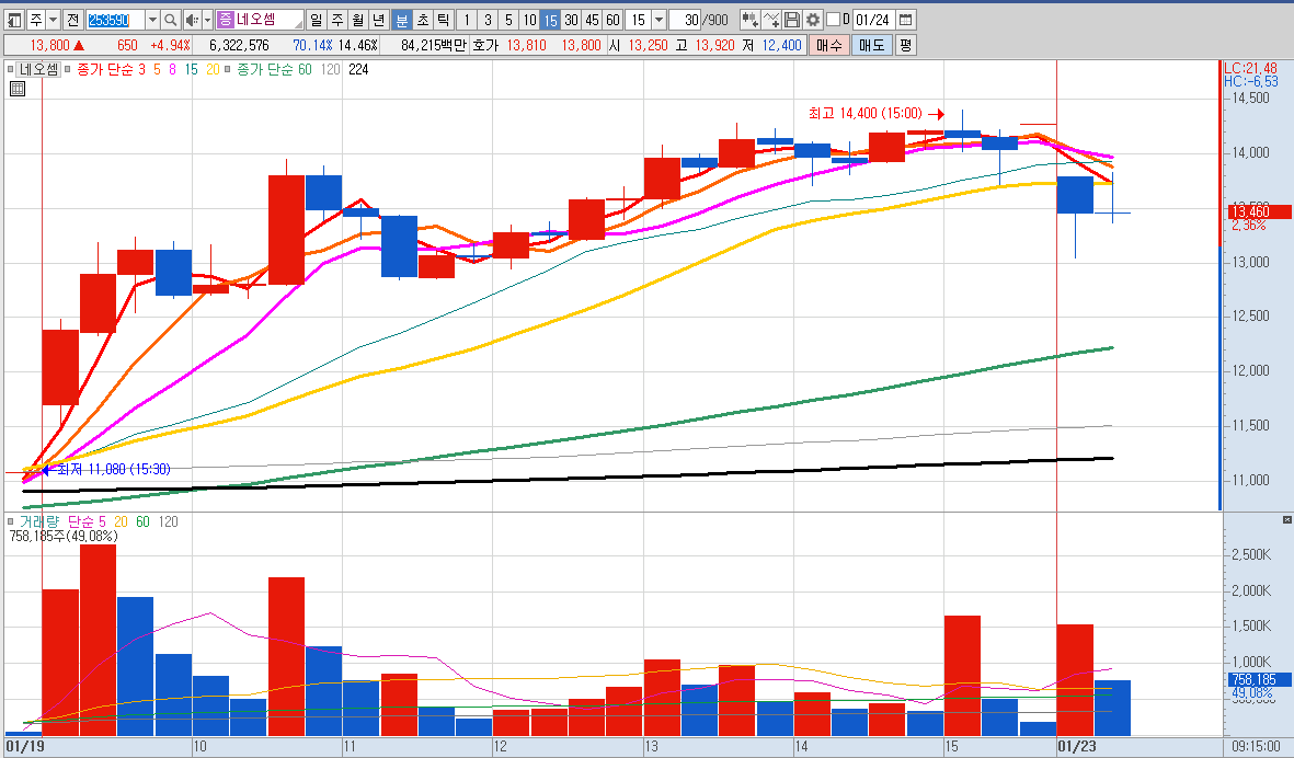 유기 2차전지 관련주로 충전과 방전 수명이 기존 2차전지 보다 5대 길고, 화재 위험이 없는 기술이 확보되었다는 소식에 상한가