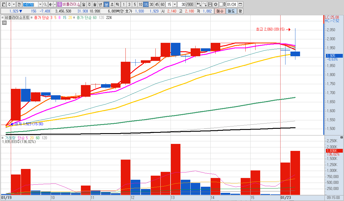 비전프로 등에 사용될 수 있는 화질 개선 AI솔루션 '픽셀'이 호평을 얻으면서 주가 상승세